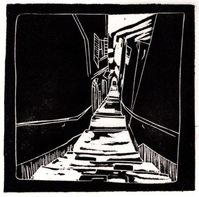 Der Holz- und Linolschnitt ist für mich eine der unmittelbarsten druckgrafischen Techniken – ein Prozess, in dem sich Handwerk, Material und Gestaltung auf besondere Weise verbinden. Ausgangspunkt ist meist eine Zeichnung, die ich in Form, Fläche und Linie übersetze und dabei zunehmend reduziere. Im Einblattdruck in Schwarz-Weiß entsteht eine klare, kontrastreiche Bildsprache, die vom Zusammenspiel von Licht und Schatten lebt. Besonders fasziniert mich der Dialog mit dem Material: Das Schneiden in Holz oder Linoleum verlangt, das Motiv in positive und negative Flächen zu denken und Entscheidungen direkt im Arbeitsprozess zu treffen. Diese Spannung zwischen Planung und spontaner Reaktion macht für mich den schöpferischen Reiz dieser Technik aus.