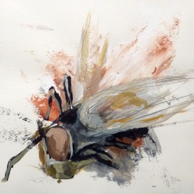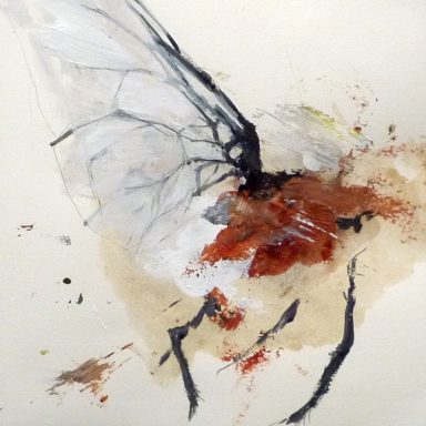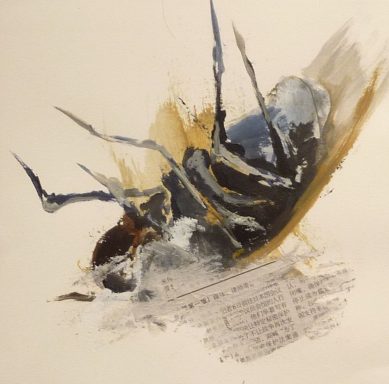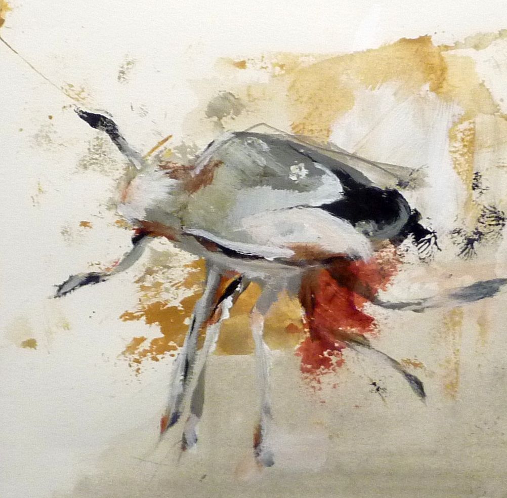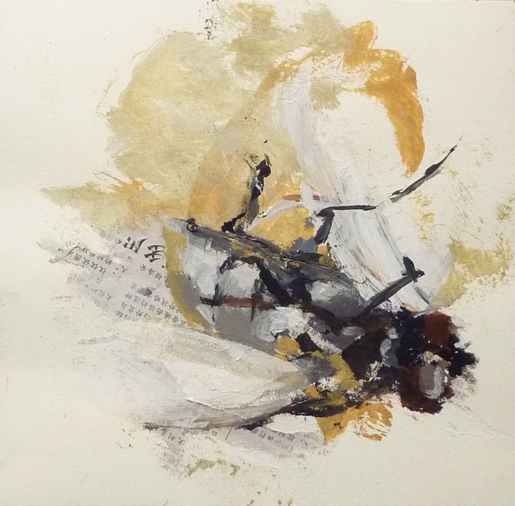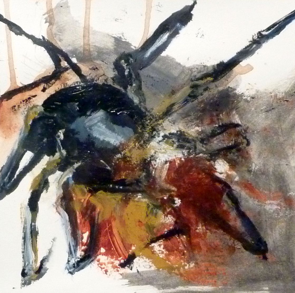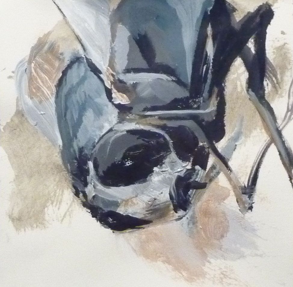 Auch in dieser fortlaufenden Serie, begonnen im Jahr 2013, untersuche ich die fragile Grenze zwischen Gegenständlichkeit und Abstraktion. Die Werke bewegen sich im Spannungsfeld von Anziehung und Abstoßung, von Schönheit und Grauen. Durch den Einsatz von Acryl und zum Teil Collagematerial auf kleinformatigen Papieren (20 x 20 cm) entstehen verdichtete Bildräume, in denen Formen zwischen Erkennen und Auflösen changieren. Morbidität und Ästhetik verbinden sich in einem malerisch-skizzenhaften Duktus mit grafischen Elementen und Collage.