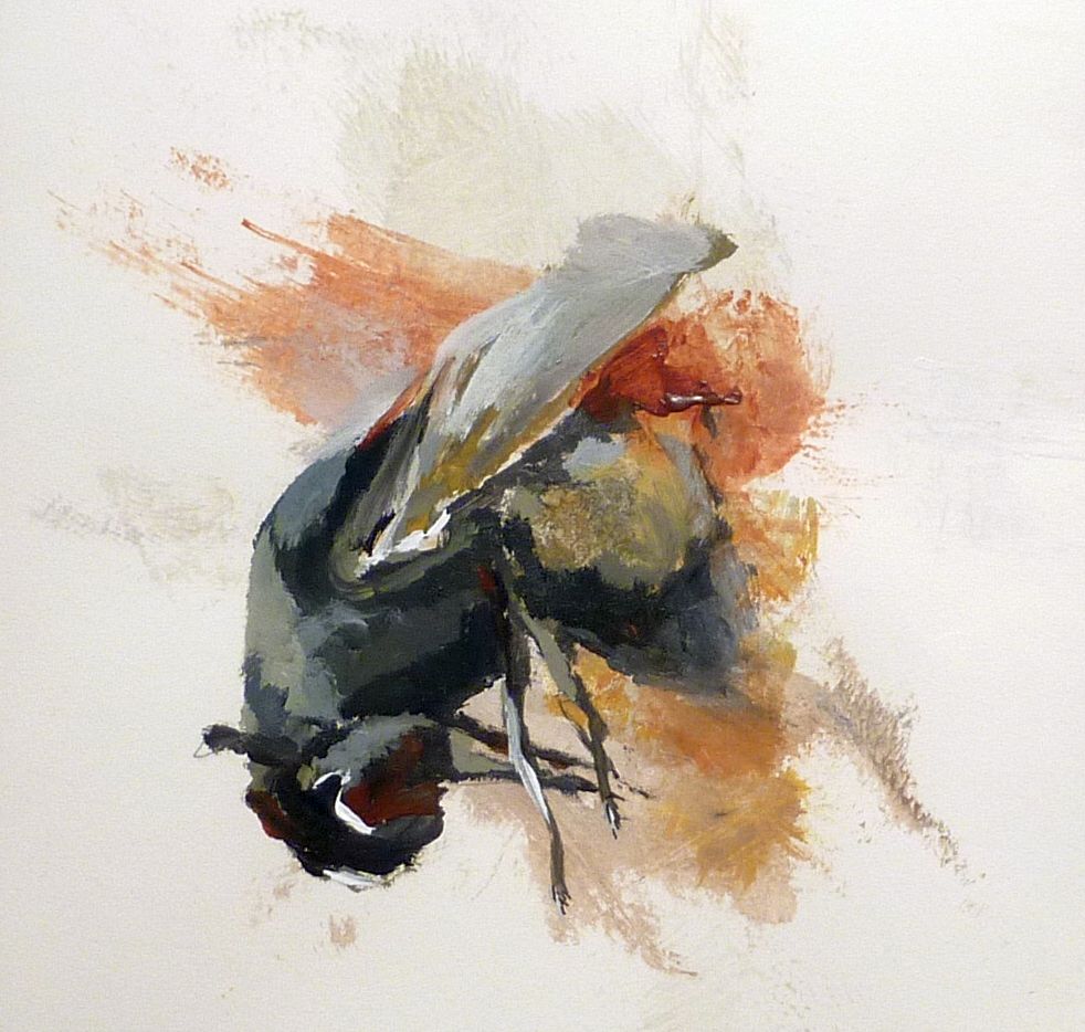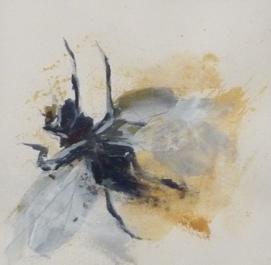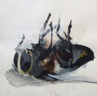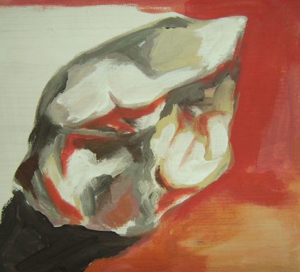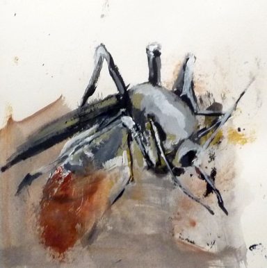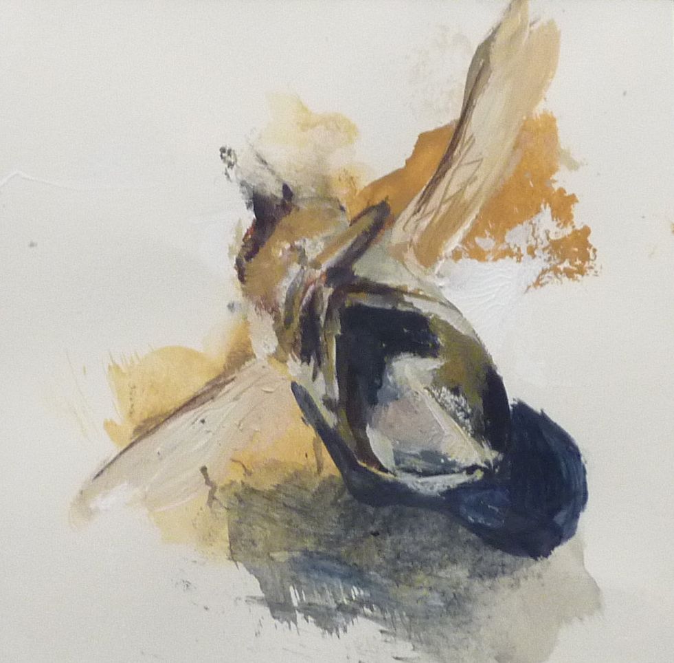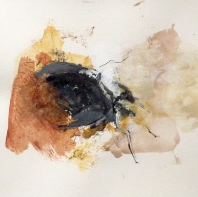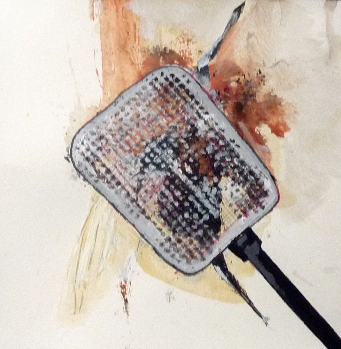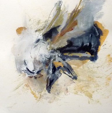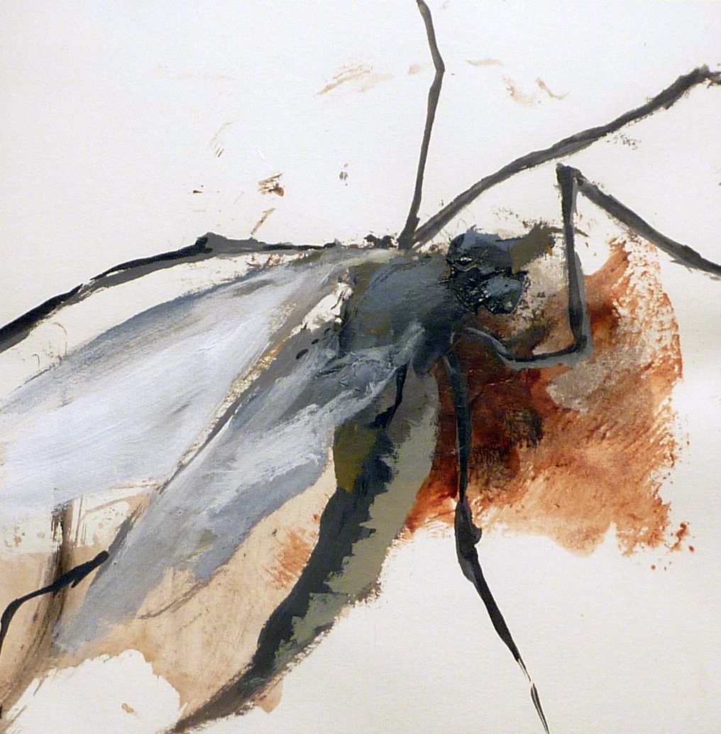 Auch in dieser fortlaufenden Serie, begonnen im Jahr 2013, untersuche ich die fragile Grenze zwischen Gegenständlichkeit und Abstraktion. Die Werke bewegen sich im Spannungsfeld von Anziehung und Abstoßung, von Schönheit und Grauen. Durch den Einsatz von Acryl und zum Teil Collagematerial auf kleinformatigen Papieren (20 x 20 cm) entstehen verdichtete Bildräume, in denen Formen zwischen Erkennen und Auflösen changieren. Morbidität und Ästhetik verbinden sich in einem malerisch-skizzenhaften Duktus mit grafischen Elementen und Collage.