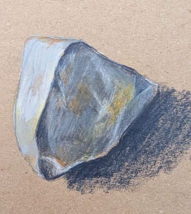 Der Stein als Bildmotiv fasziniert mich in seiner Individualität und freien Verfügbarkeit. Dabei bewege ich mich auch an der Schnittstelle zwischen Gegenständlichkeit und Abstraktion. Die entstandenen Bilder sind eine Zusammenschau von Formen und Farben, dabei in unterschiedlichen Techniken umgesetzt, u.a. Acryl, Buntstift, Aquarell.