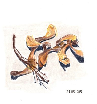 Mit dem Einsatz von Buntstiften entsteht durch Schraffuren, Verdichtungen und Schichtungen kein genaues Abbild, sondern eine ganz unmittelbare visuelle Form des Wahrnehmens und Erlebens im Moment des Zeichnens. Eine ganz persönliche Dokumentation des Hier und Jetzt.